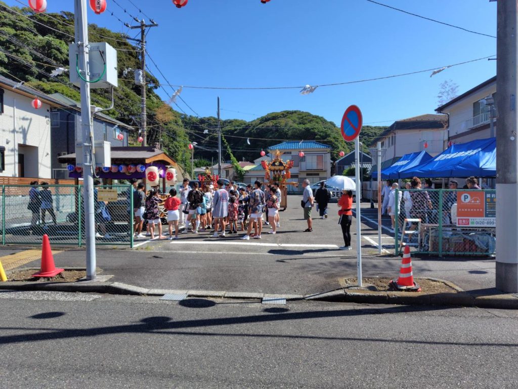 午後になると、神社前の広場に各町内の神輿や山車が集合しました。14時から宮原町内を先頭にして、各町内15分の持ち時間で宮入が始まりました。 我が町内は10町内の中で9番目の出番なので、16時頃からの宮入です。 町内の祭礼関係者は去年から私が氏子総代になり、他の関係者もかなり入れ替わりました。 みんなが楽しめる祭りにしようと関係者で努力した甲斐があり、今年の参加者は去年より多くなりました。