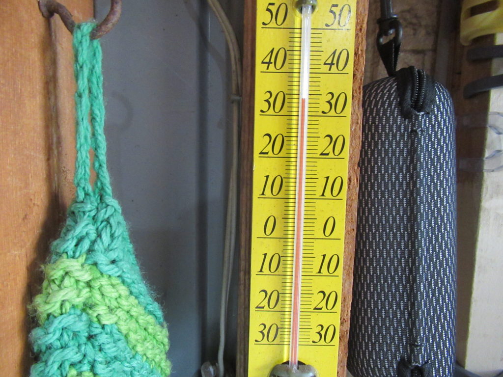 ガレージ内の温度計は外の気温と同じで暑いです。 でも、熱はこもっていません。