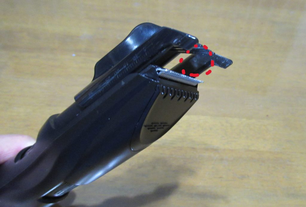 毎回使用する時は慎重にカットしなければ、大変なことになりそうな場合があります。それは後ろやサイドを刈る時にコームを正しく髪に当てないと、誤って深くカットしてしまい、円形脱毛症のような状態になってしまうのです。少し長めにカットしようとコームの調節ツマミを回して伸ばすと、刃先とコームの間に空間ができてしまい不用意な操作では深くカットしてしまいます。長年使っていますが、今でも特に自分で後頭部を刈る時はヘアカッターの刃先の向きにすごく気を使います。