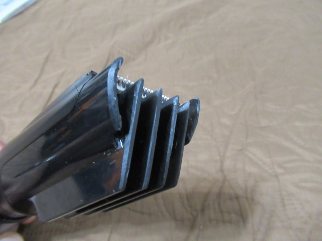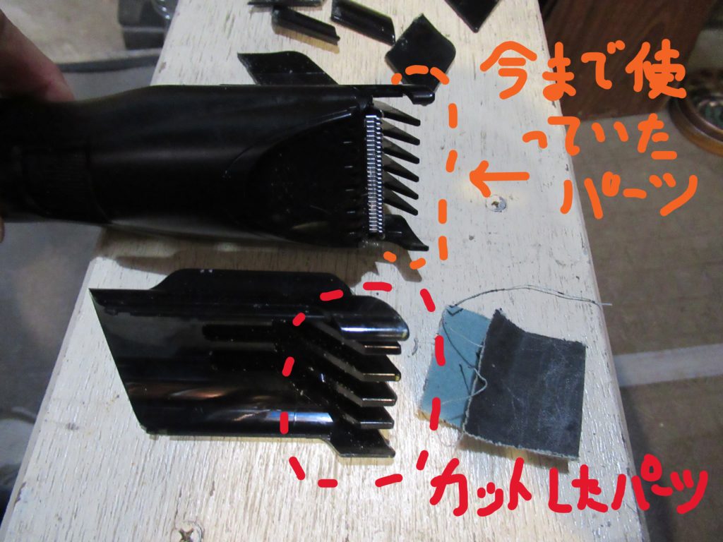 加工したコームはセットした時に歯とコームの間に空間が出来ません。これなら不用意な操作をしても、刃先が直接頭皮近くに当たって深く刈りすぎてしまう恐れが無くなると思いました。
