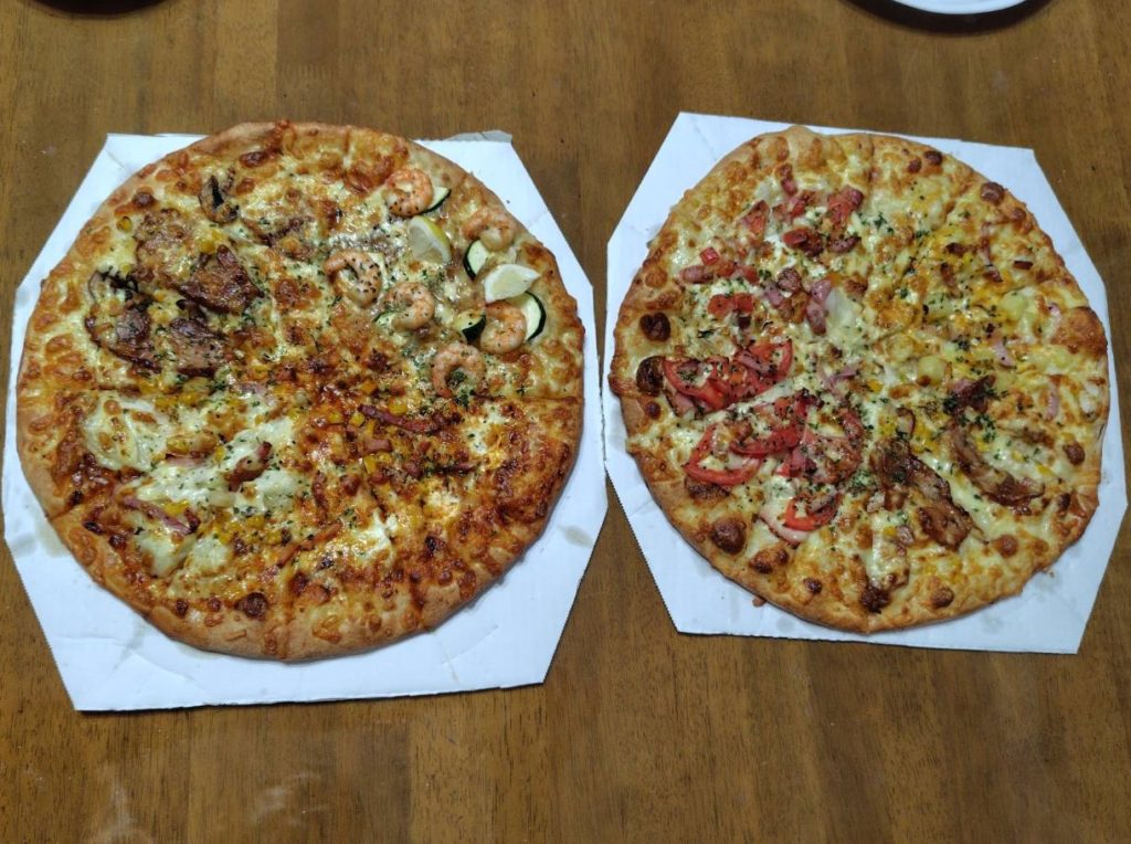 2枚ともLサイズで「夏のバラエティークォーター」と「ガーリックシュリンプのファミリークォーター」です。 4人では一度に食べきれませんでしたが、とっても美味しかったです。