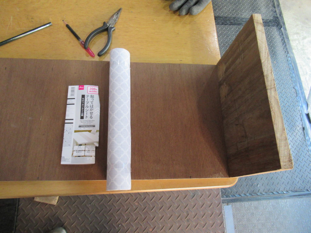 ゴミ袋からの濡れた汚れが台や仕切りに付着することが考えられます。このため、「貼って剥がせるテーブルシート」を内側全体に貼ります。