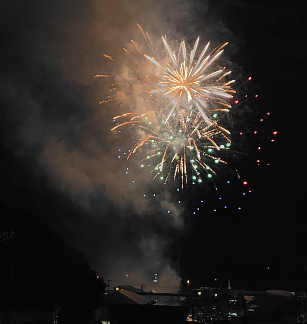 するとフィナーレは今までの間の抜けた花火が嘘のように、豪華な花火が水上と空中で連続して開花しました。私はその前の散発で打ちあがる花火を写真に撮った後は、スマホやデジカメを早々とバックの奥にしまったので、フィナーレの最高なシーンは写せませんでした。残念です。 それでも初めての地元の花火大会を堪能することができました。関係者の皆さん ありがとう。 ではまた