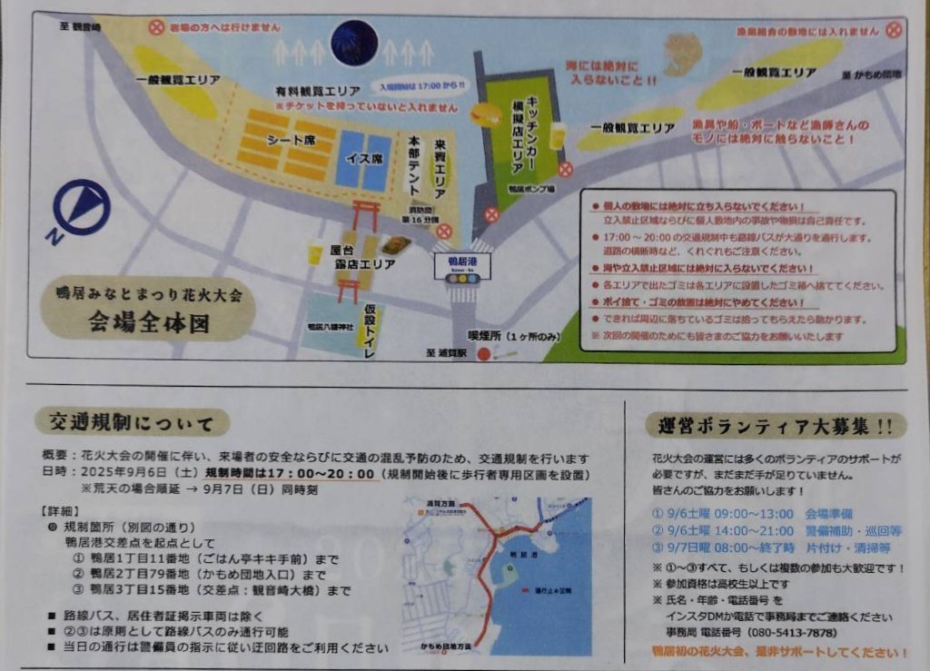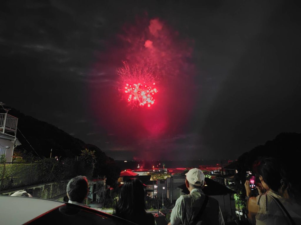 この花火大会の企画については春に 地元鴨居神社の氏子総代が神社の社務所で会合をしていた中で、実行委員の代表者から話がありました。 とっても夢のある企画なので、皆で応援しようという意見でまとまりました。その時すでに費用の工面は、見通しが立っているとのことでした。この小さな漁港で花火大会を開催するということは、住民の理解がないとできない話です。