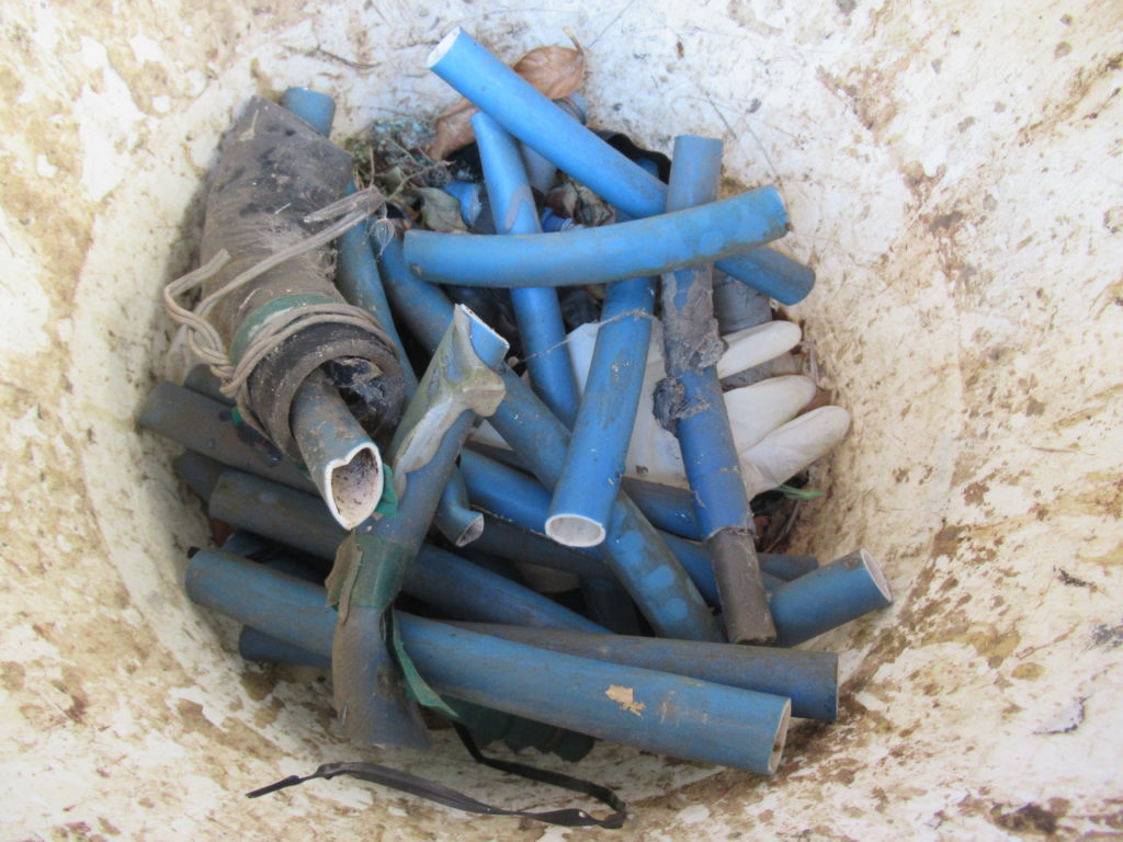 ホースを撤去しました。古いホースなので切り刻んでゴミの回収に出しました。