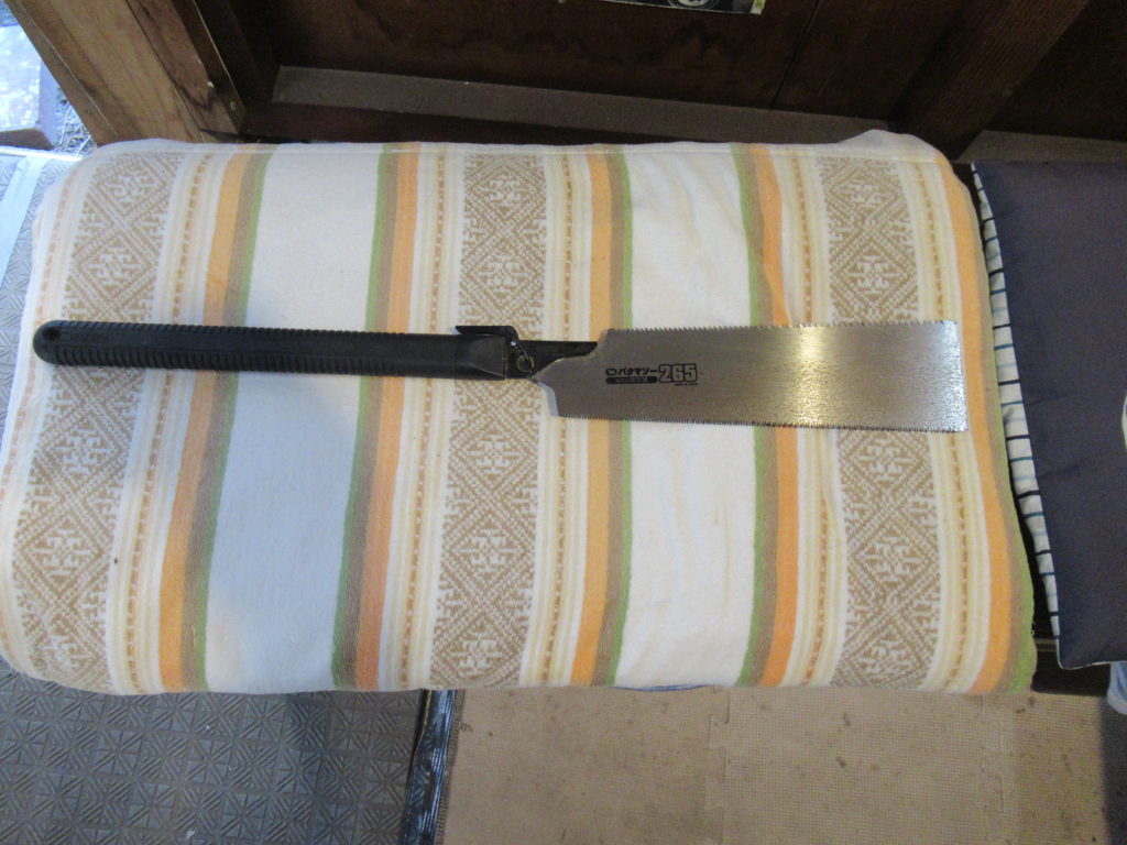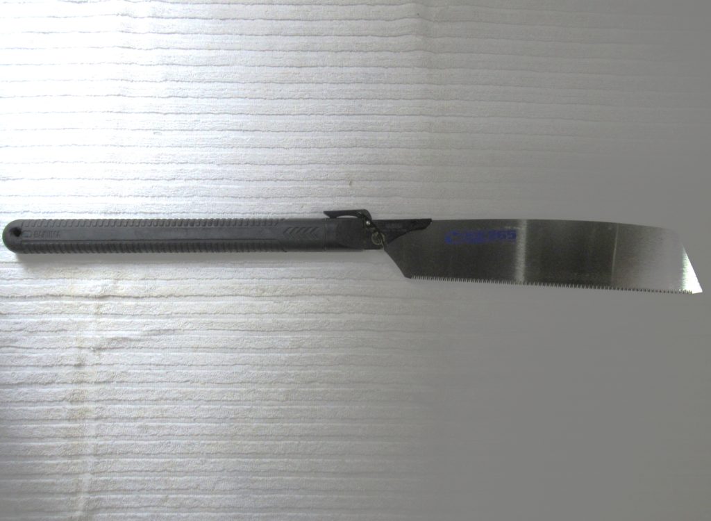 替刃式ノコギリは、ホームセンターで購入した「バクマソー265」という両刃がある替刃式ノコギリです。 DIYでは横挽きを使うことがほとんどで、縦挽きの刃はほとんど使いません。