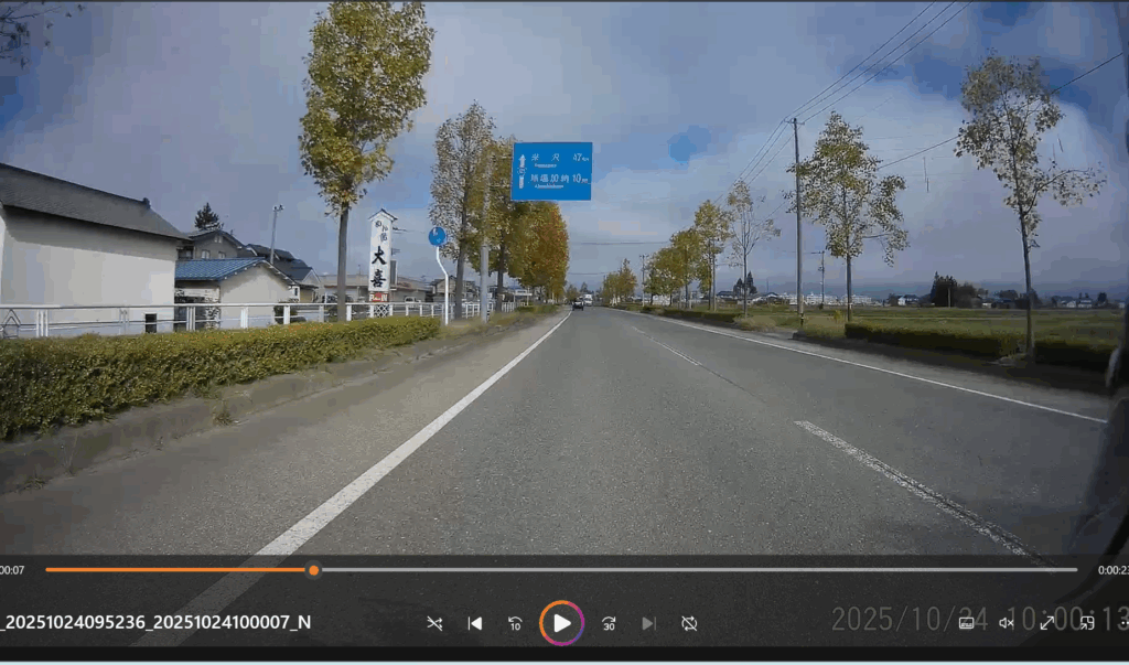 米沢への一般道は街路樹の紅葉が始まり、その左右には田畑が広がっています。 身体を吹き抜ける風も心地よくて、バイクツーリングに最高なコンディションです。一般道を走る醍醐味ですね。