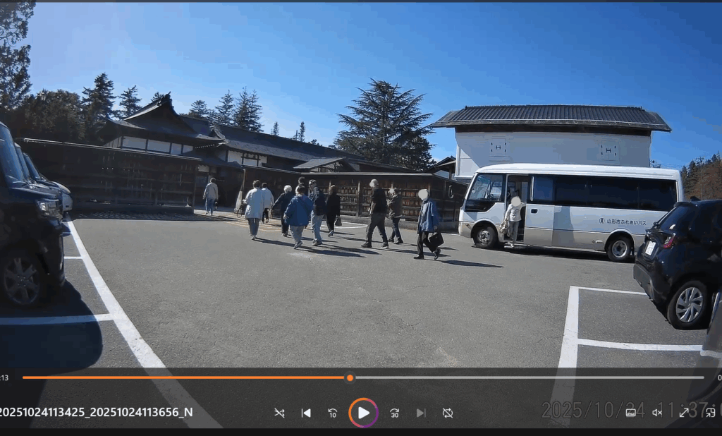 「上杉伯爵邸」に到着しました。ちょうどマイクロバスで到着した客が、背の高い板塀に囲まれた屋敷に入っていくところでした。私は一番入り口に近い場所にバイクを停めました。