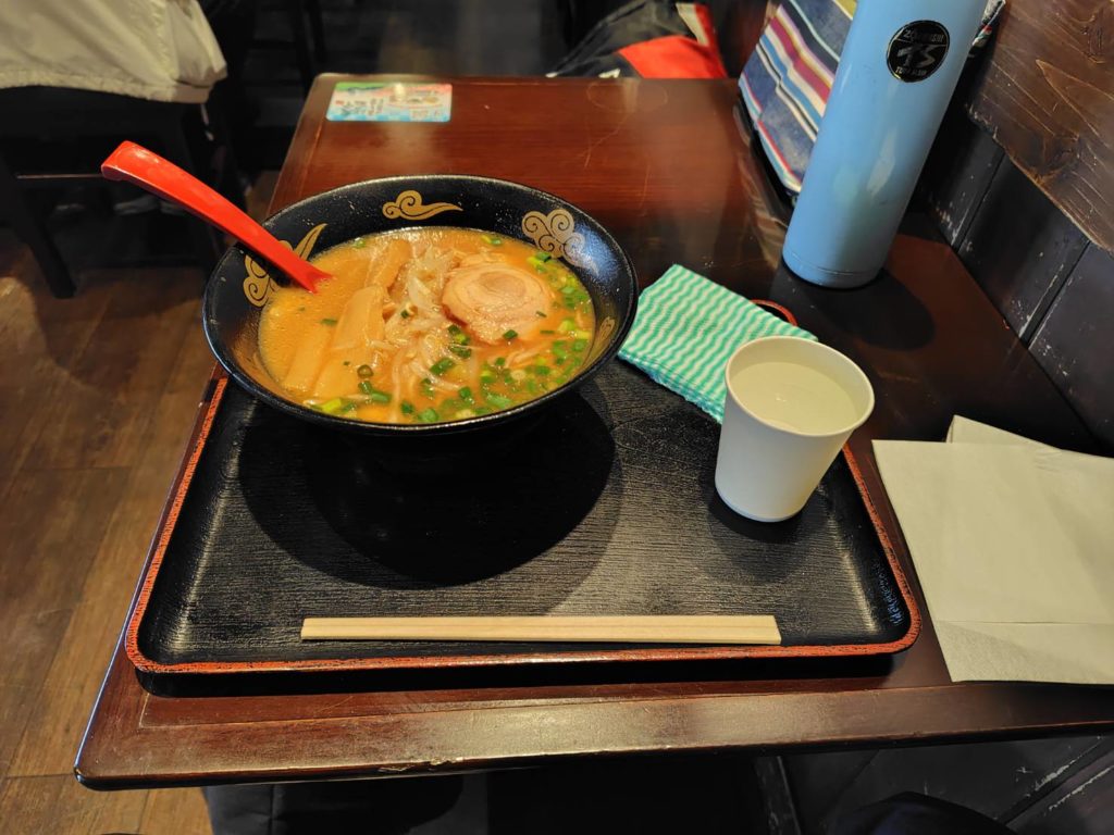 東京に近づいた頃に昼になりました。埼玉県の羽生パーキングエリアで味噌ラーメンを食べました。 雨の中バイクで走って冷えた体に、熱いラーメンがとっても美味しかったです。