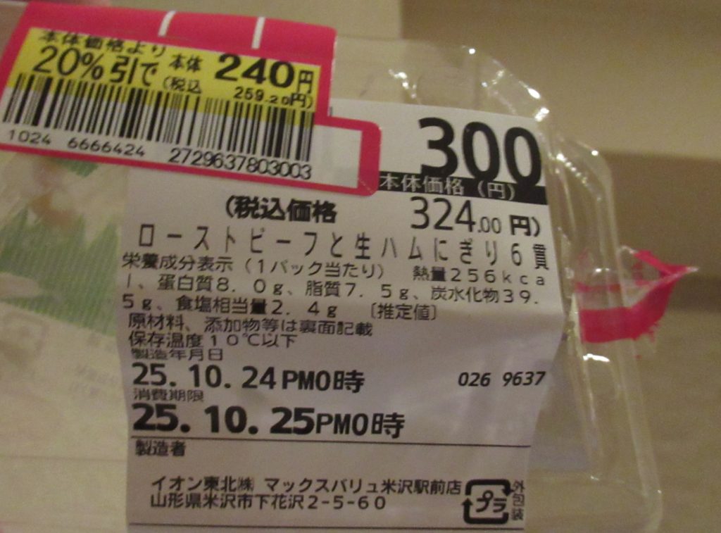 「ローストビーフと生ハムの握り寿司」は20%引きで259円でした。メチャ安くて美味しかったです。早起きして寝不足だし体が疲れていたので、夕食後はほどなくして眠りにつきました。