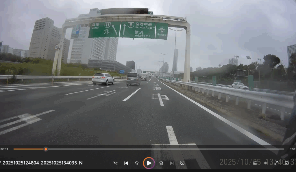 首都高に入りました。時折雨が激しくなりましたが、NT1100はツーリングに対応したバイクでABSやフルカウル、それにオートマチックのモードに「レイン」があり、強い雨の中でも安定した走りができました。