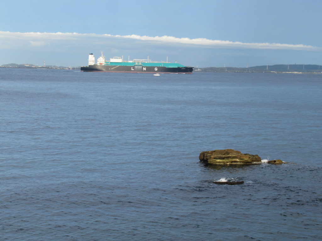LNGタンカーは球形で大型の低温断熱タンクを船体内に複数備えているイメージだったので、こんな形状のLNGタンカーもあるんだなとビックリしました。