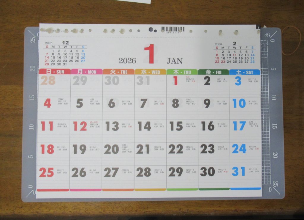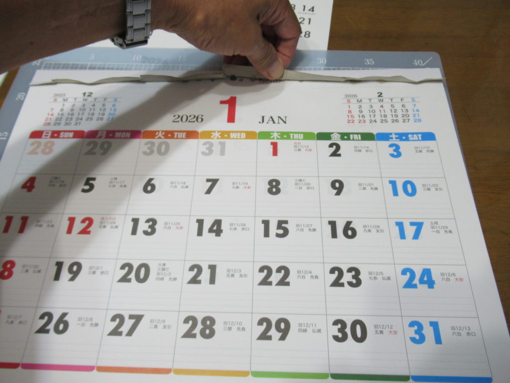 カレンダーは横長で、マイカレンダーにちょうど良いサイズの物を選びました。カレンダー上部の「芯になっている厚紙」を剥がしました。
