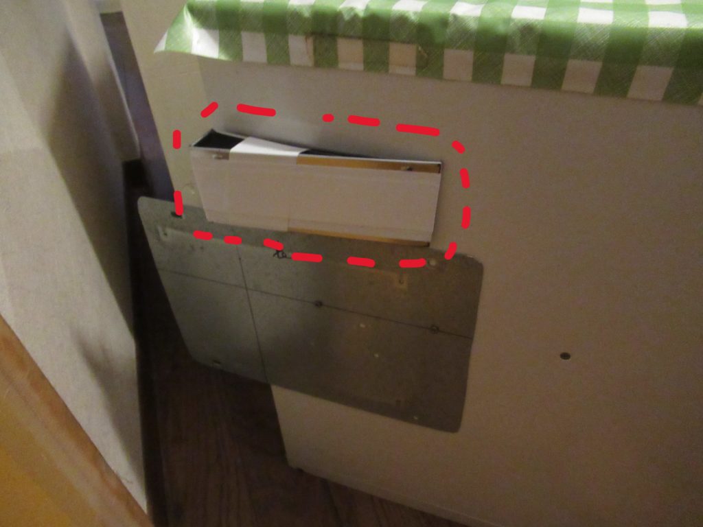 この不具合を解消する改良を考えました。収納ボックスが米びつより仕切り板側に飛び出すことで当たってしまうので、飛び出さないための工夫をします。