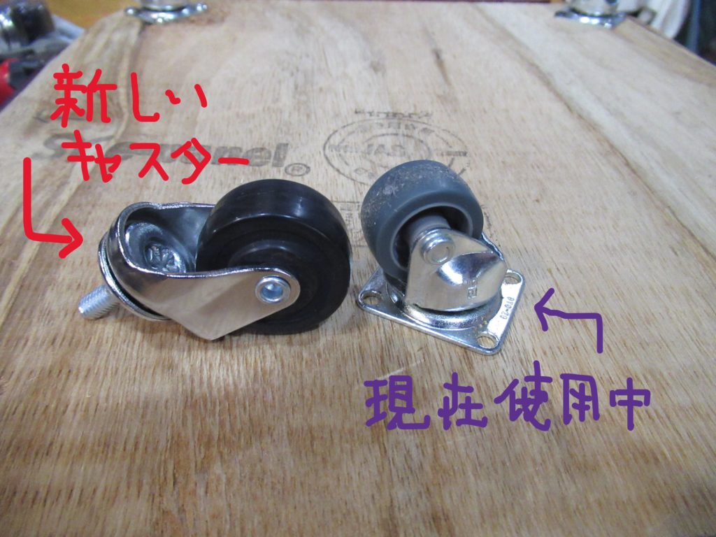 キャスターの動きが良くなり、最初に使っていたキャスターより大きい車輪なので、動かしたときの振動も小さくなったようです。ではまた