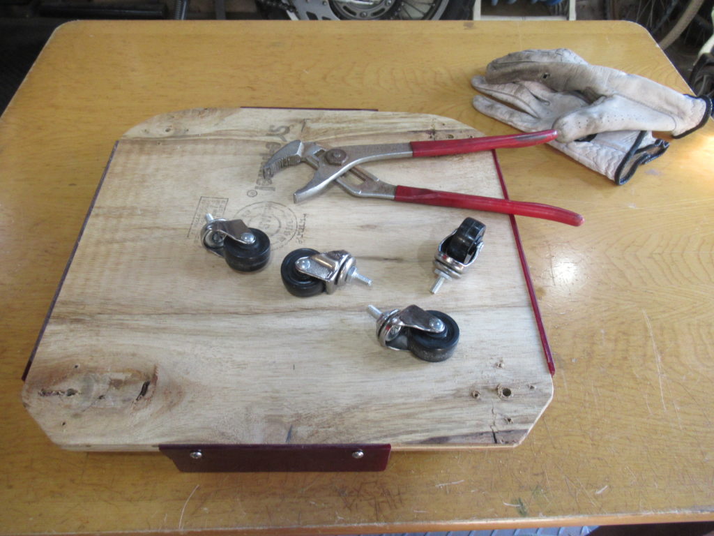 動きが悪いキャスターを外しました。ウォータープライヤーで簡単に外れました。