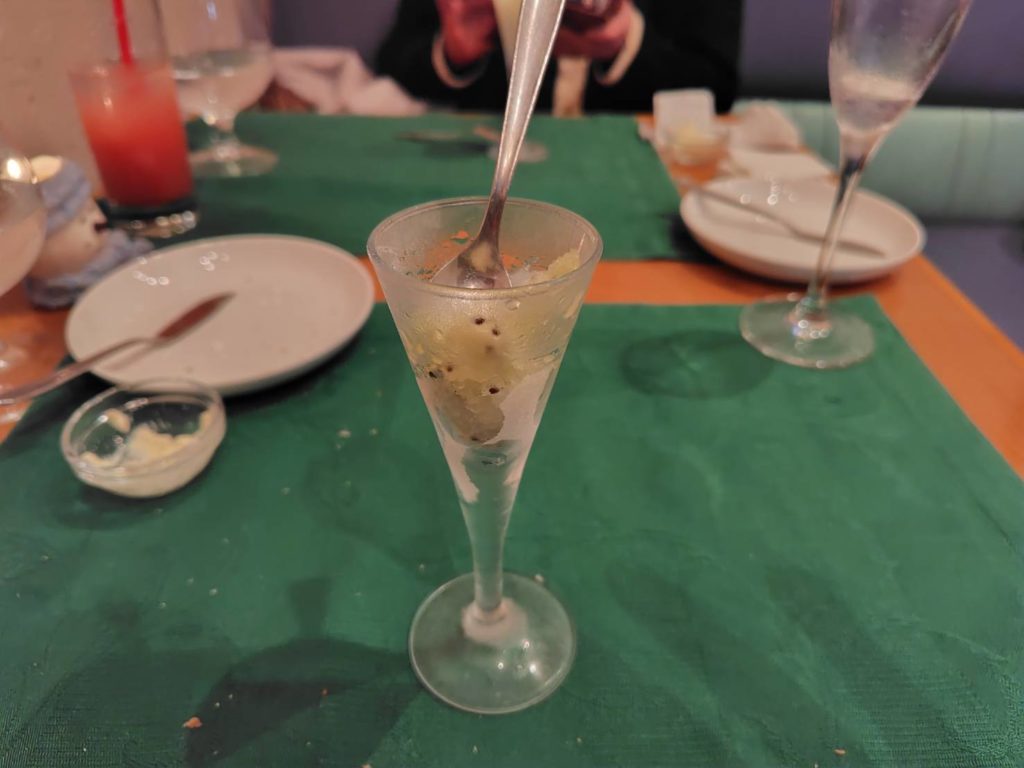 「キウイフルーツのグラニテ」です (キウイフルーツのグラニテ(氷菓子)は、キウイ本来の甘酸っぱさとシャリシャリした食感が楽しめるデザートです)
