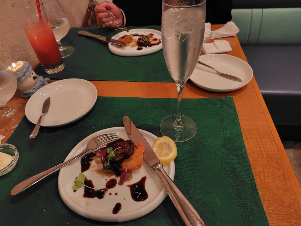 フルコースでいただいたので、食いしん坊の私でもお腹がいっぱいになりました。 シェフが丁寧に心を込めて作られているお料理だと感じました。すぐに予約が埋まる理由が分かります。 私はお酒もビール小瓶2本とジントニックを2杯飲んで、幸せな気持ちで妻が運転する車の助手席に乗って帰宅しました。 外は雨でしたが、妻と二人で満ち足りたクリスマスイブの夜を過ごせました。 ではまた