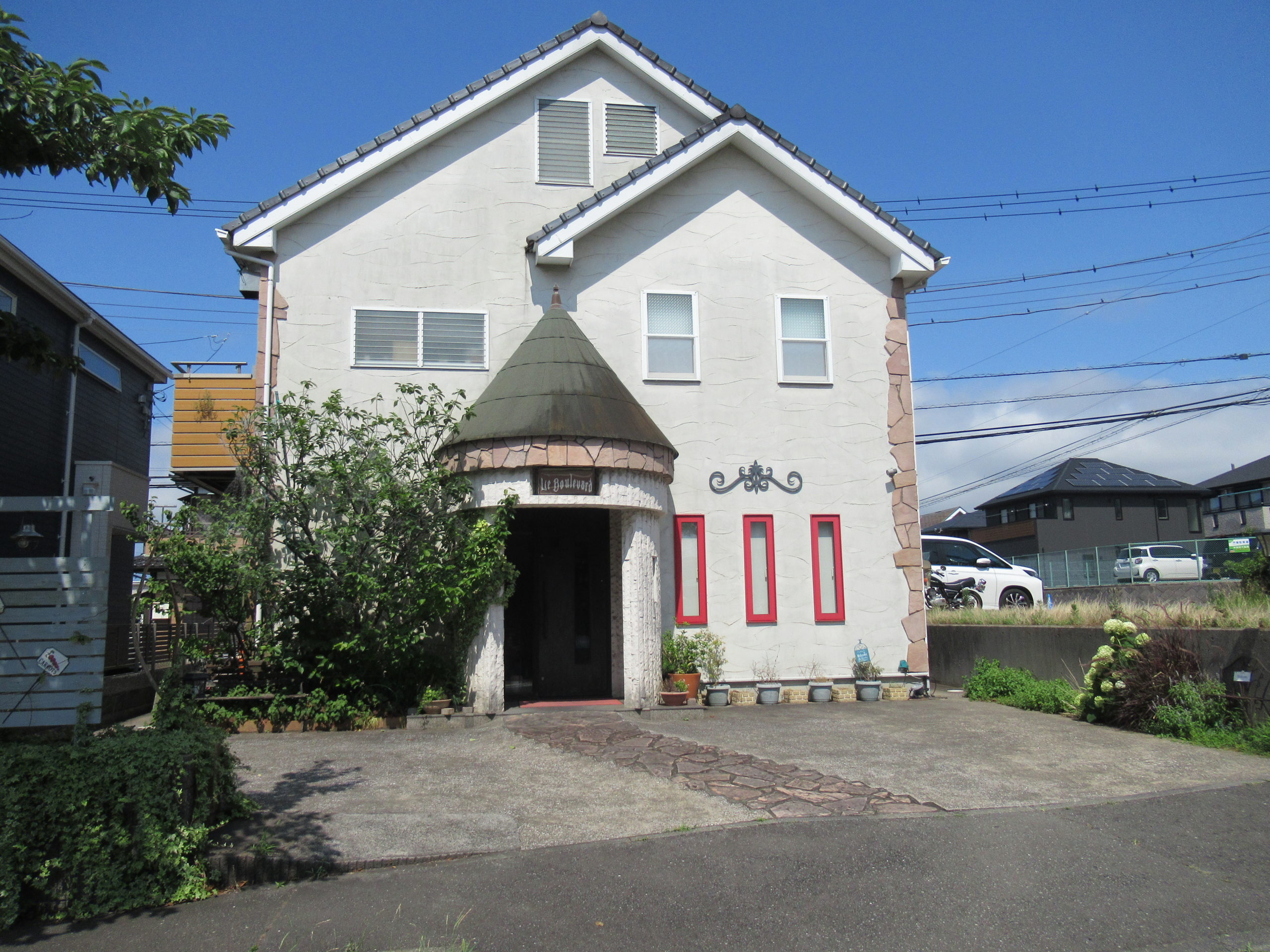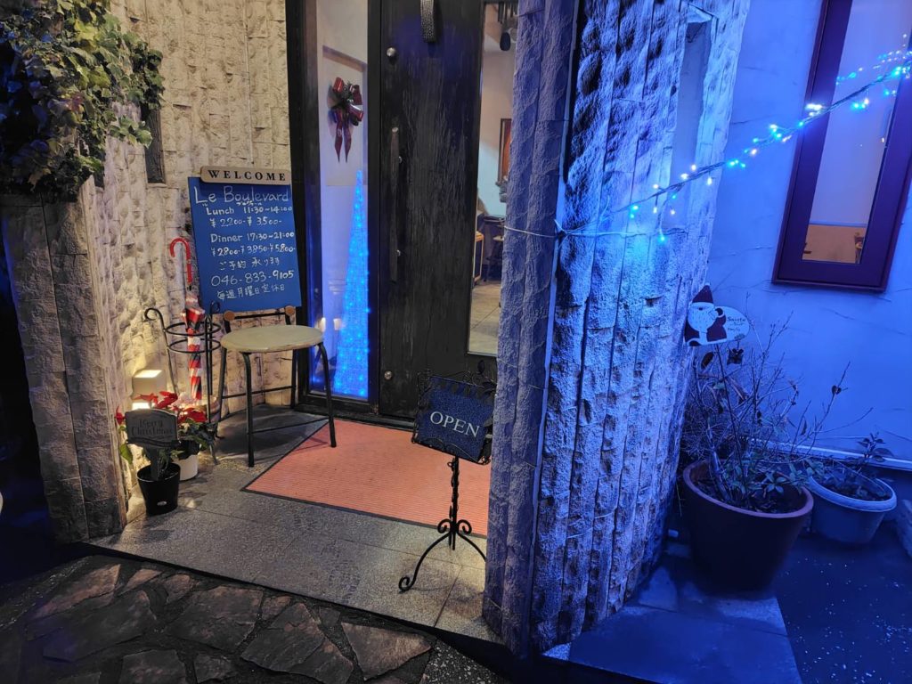 今年の7月にも訪れた「ル・ブルヴァール」というフレンチレストランです。住宅地一軒分の敷地に建つオシャレなお店で、車は店の前に2台駐車スペースがあり、隣の空き地にも駐車できます。