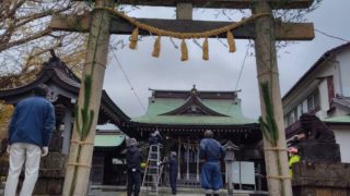 くつろぎの時間 地元神社・町内会館・自宅の正月準備 10町内の氏子総代が神社に集まり、境内の清掃やしめ縄貼り、古神札納所の設置を行いました。私は主に古神札納所の設置作業をしました。テントを張って、内側にベニヤ板で囲いを取り付けました。 2025.12.30 くつろぎの時間