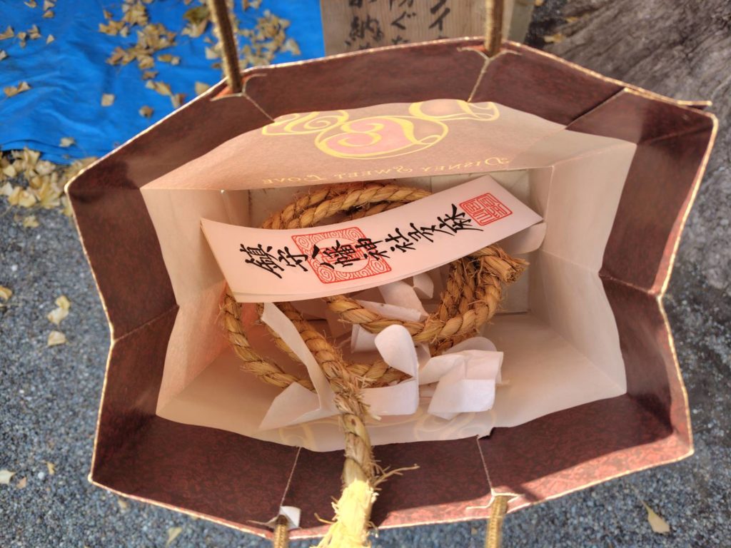 後日、私はバイクで神社を訪れ、7月の祭りで自宅玄関に取り付けたしめ縄や古いお札を納めました。