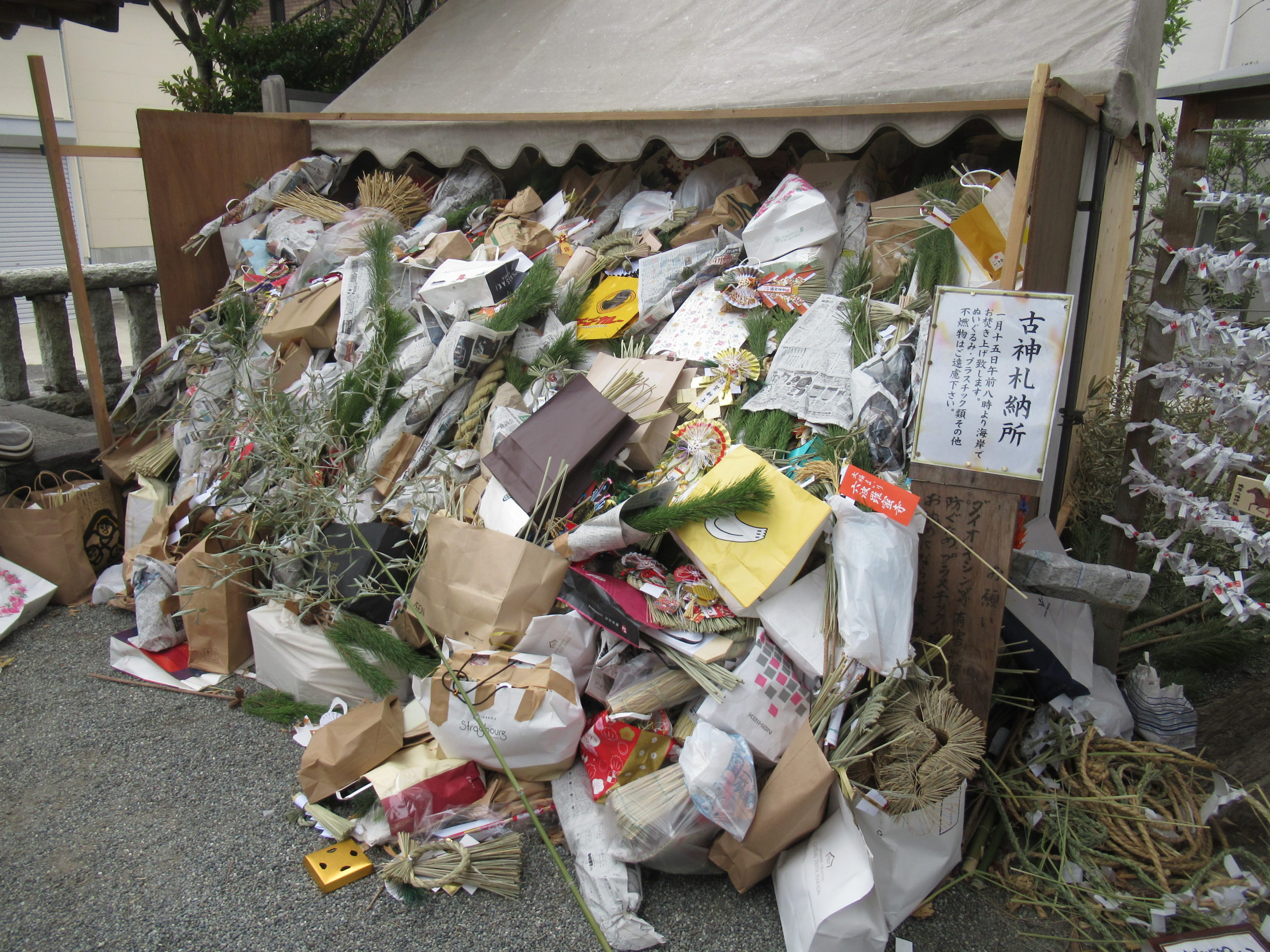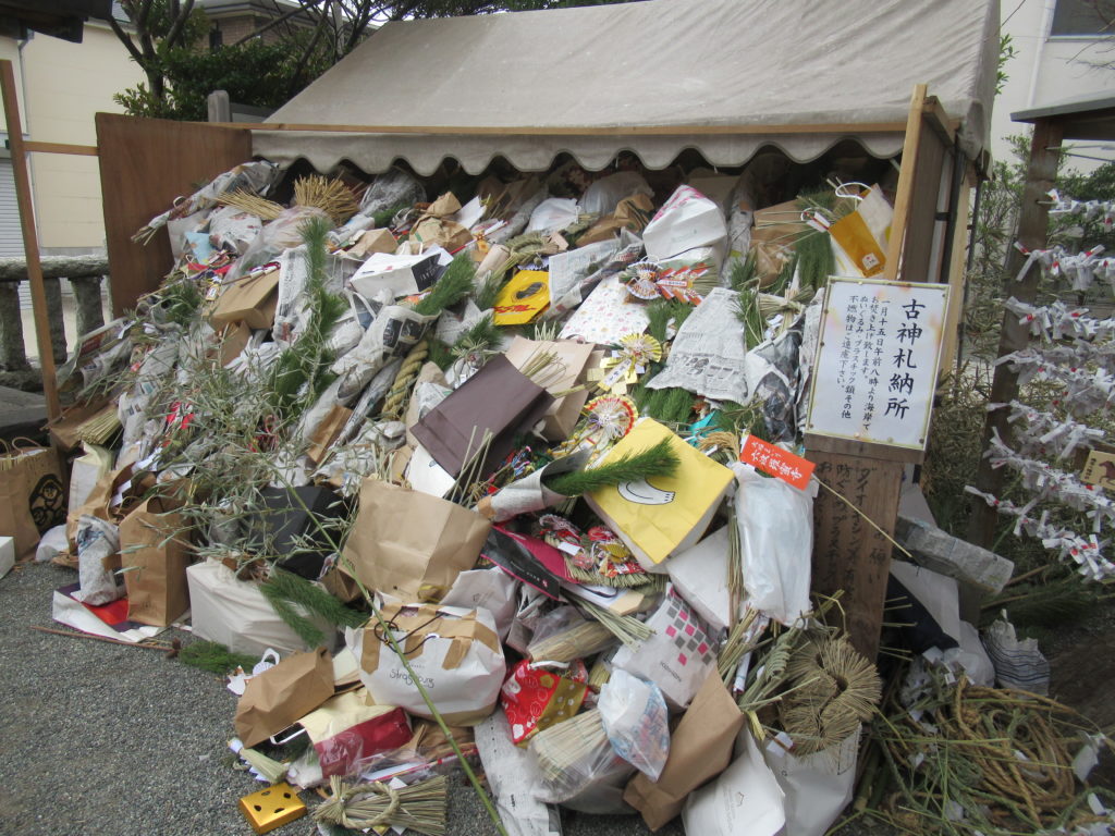 古神札納所には、入りきらないほどの古いお札やお守り等が納められていました。