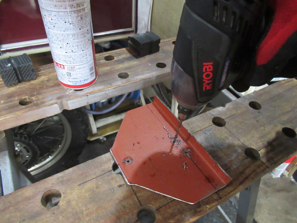 切り出した鉄板に、支柱や爪を取り付けるための穴を開けていきます。