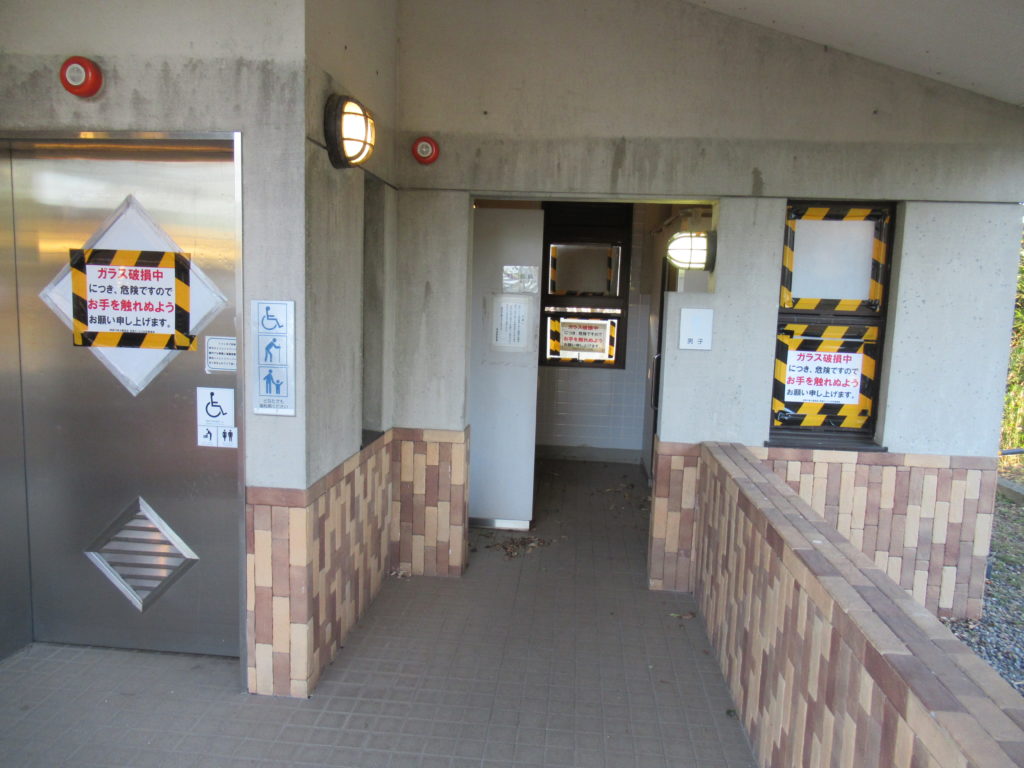 最近ウォーキングで訪れてみると、トイレに異様な光景が広がっていました。これは自然災害というより人為的に壊されたんでしょうね。 心が痛みます。