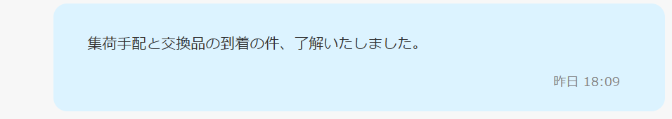 誤って届いた商品の集荷希望日をショップに連絡しました