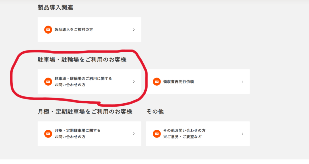 私はネットで対応できないか、ショッピングセンターと駐車場管理会社のホームページを検索しました。すると駐車場管理会社のホームページに「お問い合わせサイト」がありました。