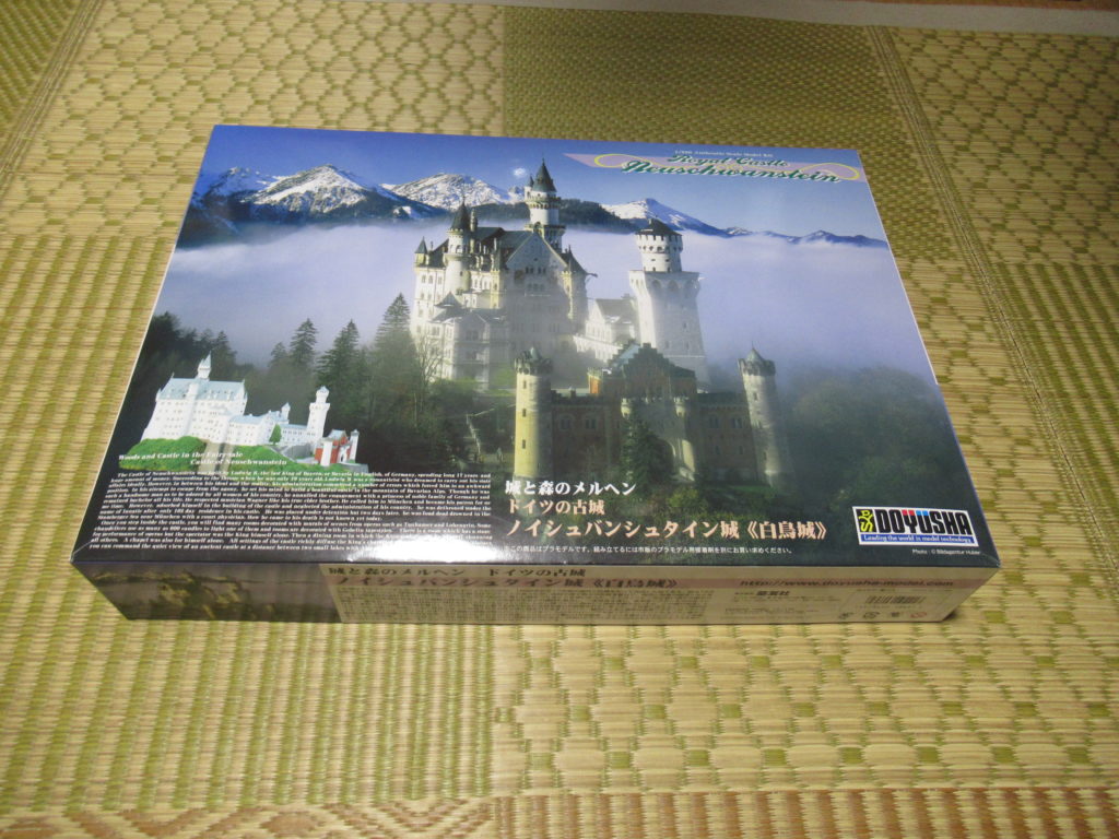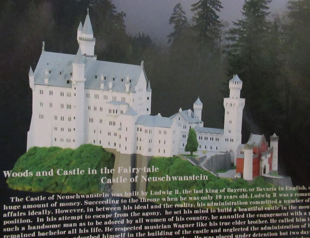 今年8月からの展示依頼を頂いたら、出品模型は何にしようかと考えました。店内にある模型の中で目に留まったのが、この西洋のお城です。2年前に日本の名古屋城の模型を製作したので、次はこの西洋の模型にしようと決めました。ドイツのノイシュヴァンシュタイン城という古城です。