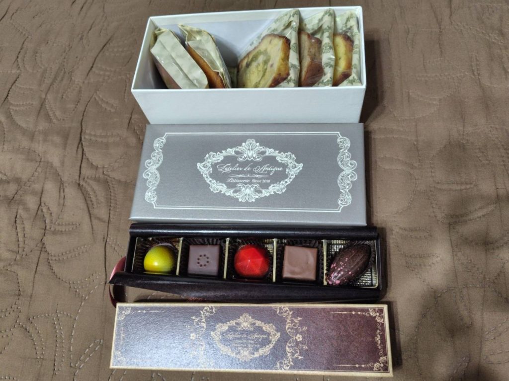 真ん中の赤いチョコが世界大会優勝作品をアレンジした物だそうです。妻と半分ずつ割って頂きました。深い味わいで、二人で感激しながら食べました。