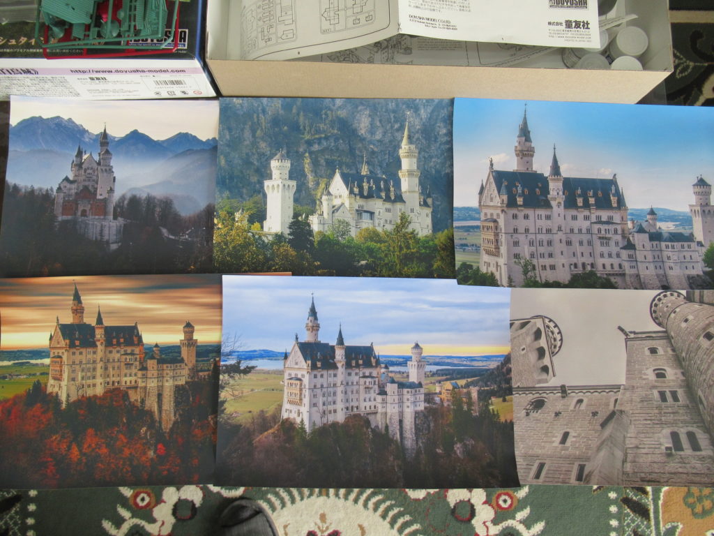 ネットでノイシュバンシュタイン城の写真を検索して、プリントアウトしました。箱に写っている完成模型より、ずっと重厚なお城ですね。 模型の設計図には、色についての説明が無いので、この写真が塗装をする時の貴重な資料になります。