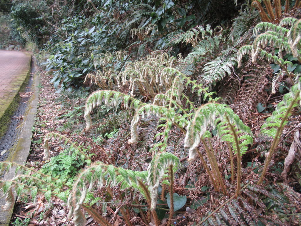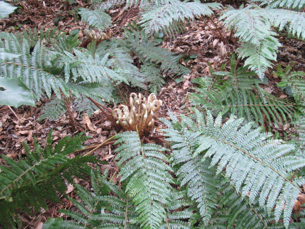 先日散歩した時には「小さなシダの子供の葉」が地面から顔を出しました。