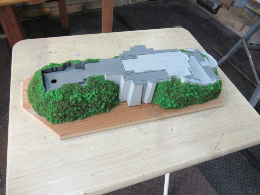 前回はお城の「山と石垣の土台」を取り付けるため、木の板で台を作ったところまででした。