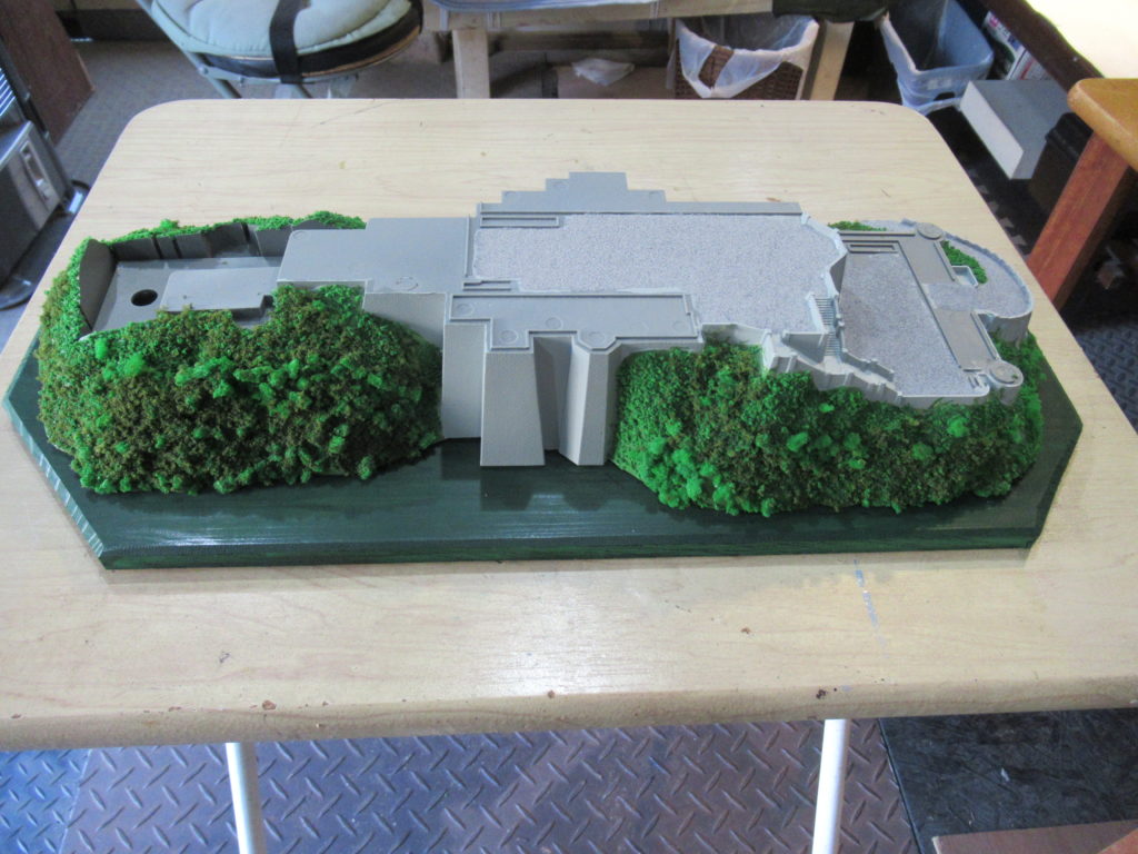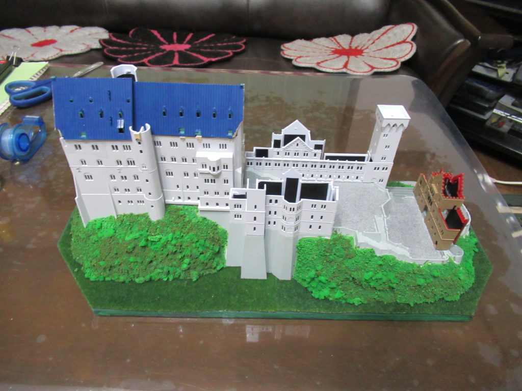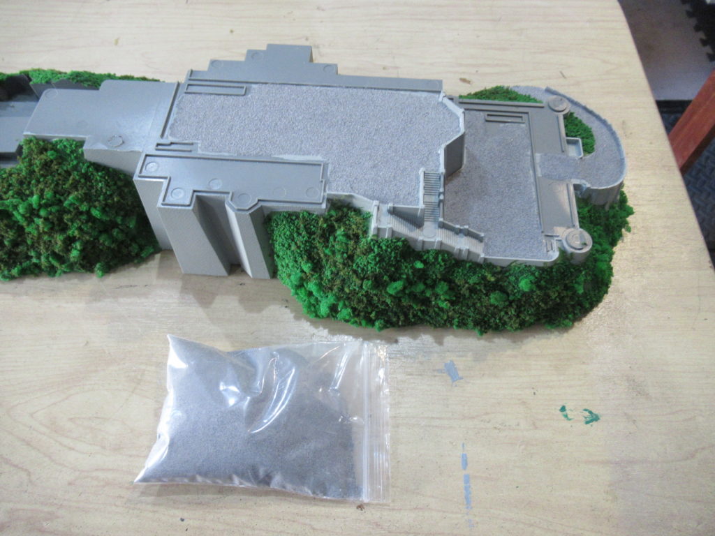 お城の土台の石畳にグレーの砂を塗りました。とっても細かい砂なので、お城にもマッチしました。これでお城の「山と石垣の土台」の作業は完了です。