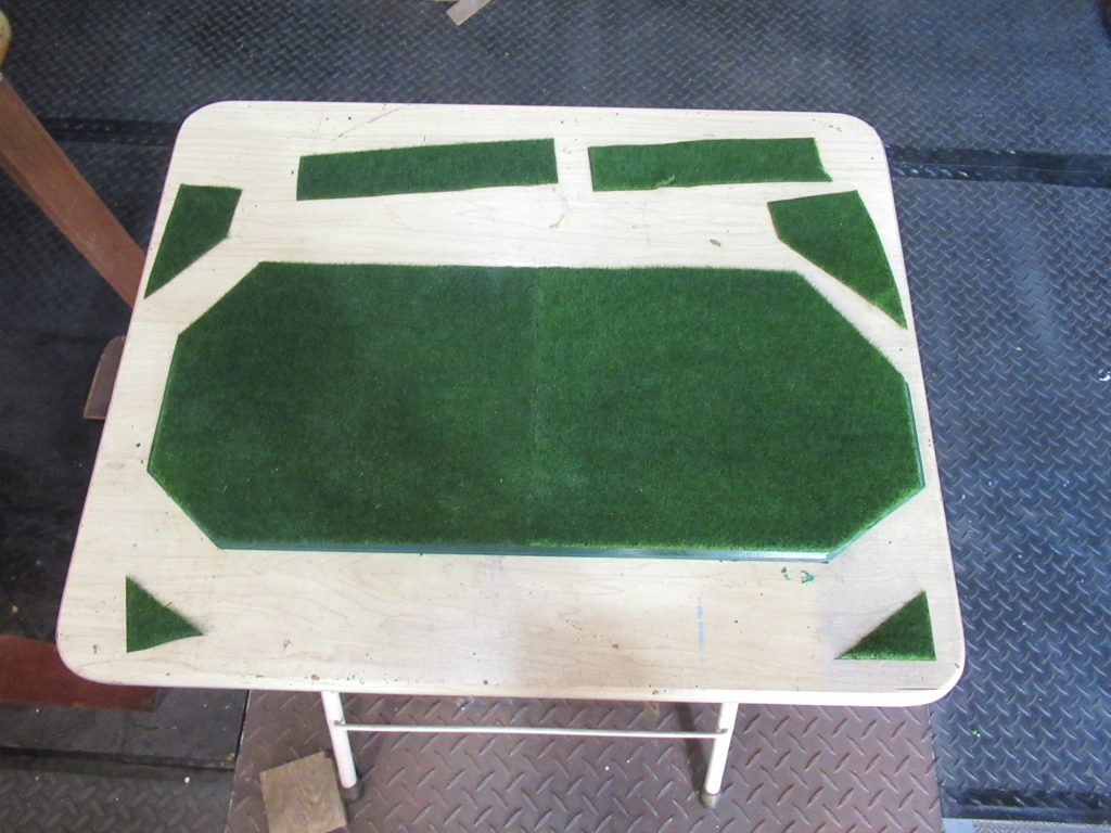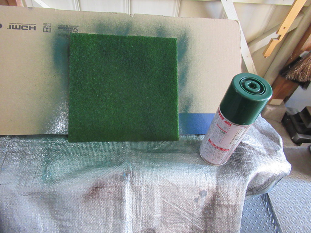購入したシートは明るいグリーン色でした。もう少し濃いグリーンの方がお城や土台とマッチしやすそうなので、スプレー塗料で濃い色に変えました。