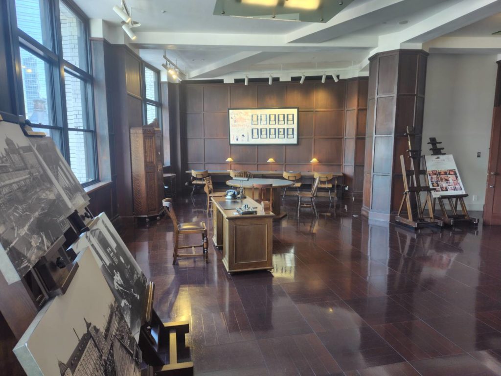建物内には、「旧東京中央郵便局長室」が歴史を継承する空間として、保存・再現されています。
