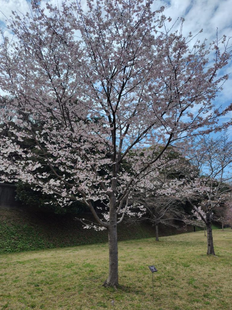 歩いて進んで行くと、桜の木が目につくようになりました。だいぶ開花が進んでいる木が多いです。