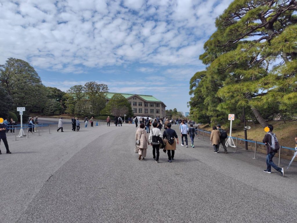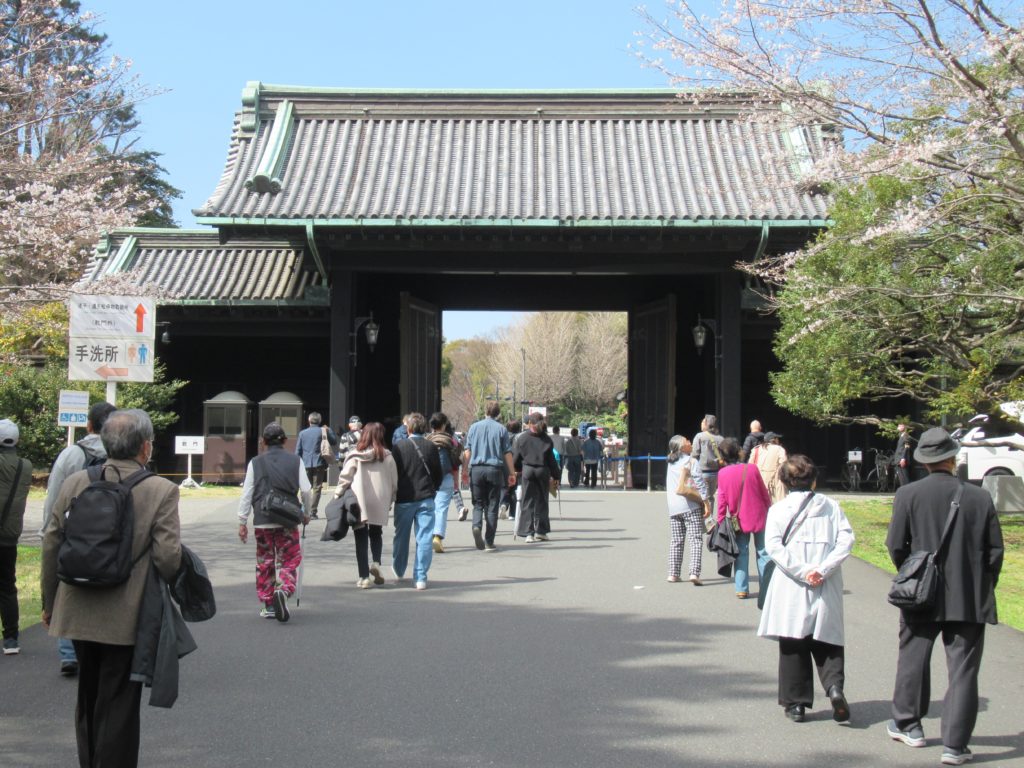 3月23日(月)に皇居を訪れました。昼前に横須賀を出発したので、午後1時頃東京駅に到着しました。乾通りの一般公開は15:30までです。平日にもかかわらず、多くの人が訪れていました。外国人と思われる人も多かったです。 皇居に入る前には、手荷物検査が実施されました。