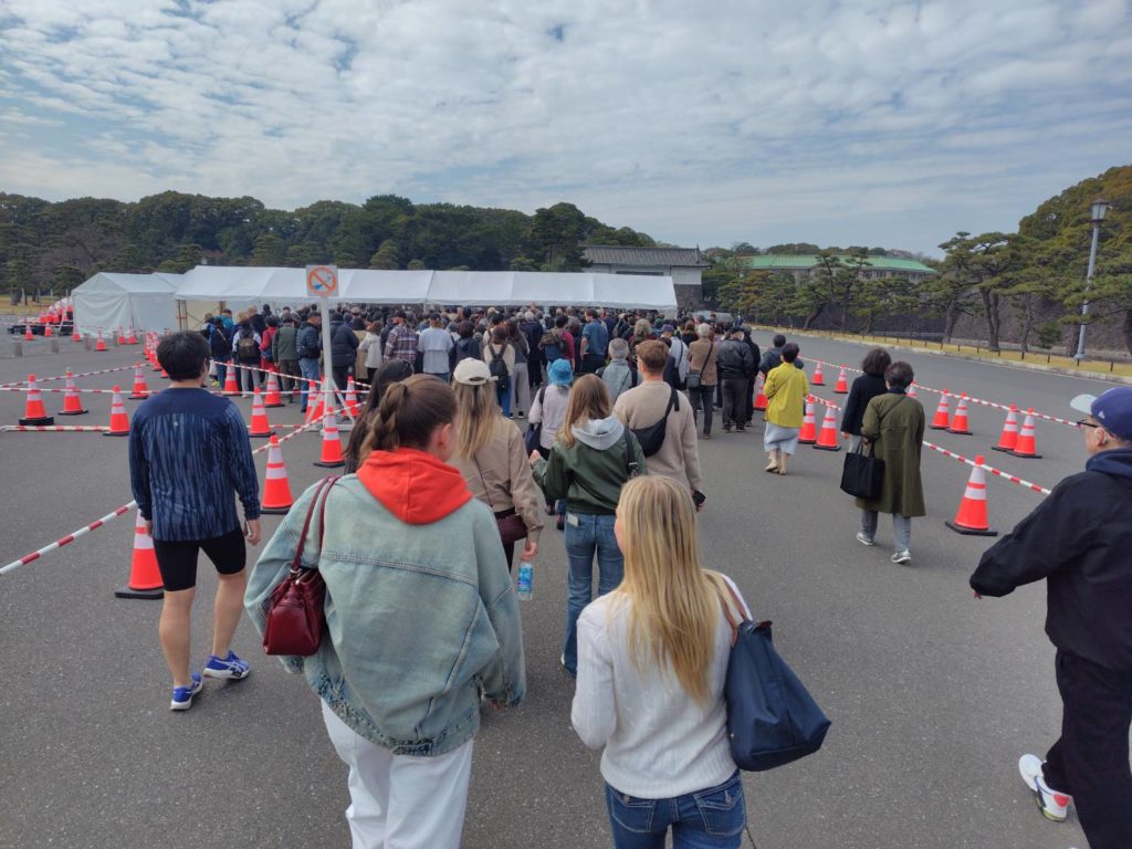 手荷物検査を受けて皇居へ