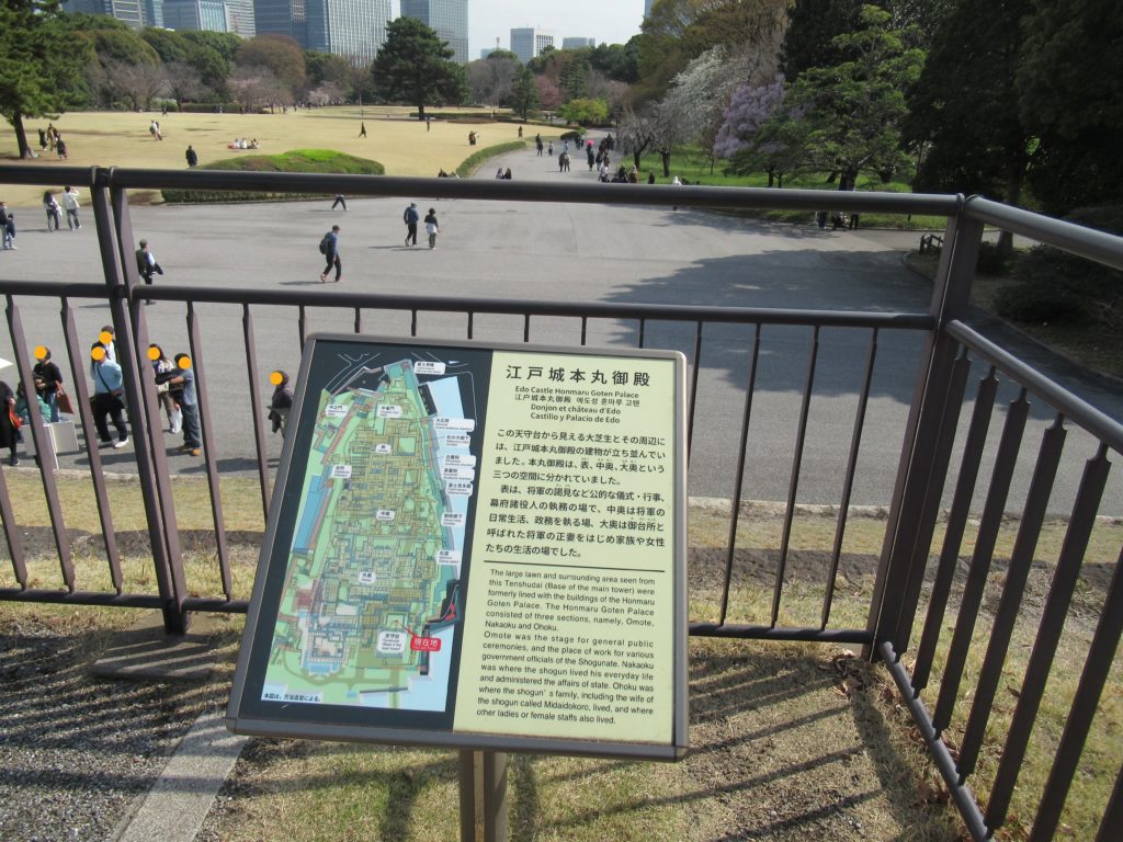 天守台からの見晴らしは素晴らしかったです。江戸時代にはここから見える芝地に江戸城本丸御殿の建物が立ち並んでいたんですね。