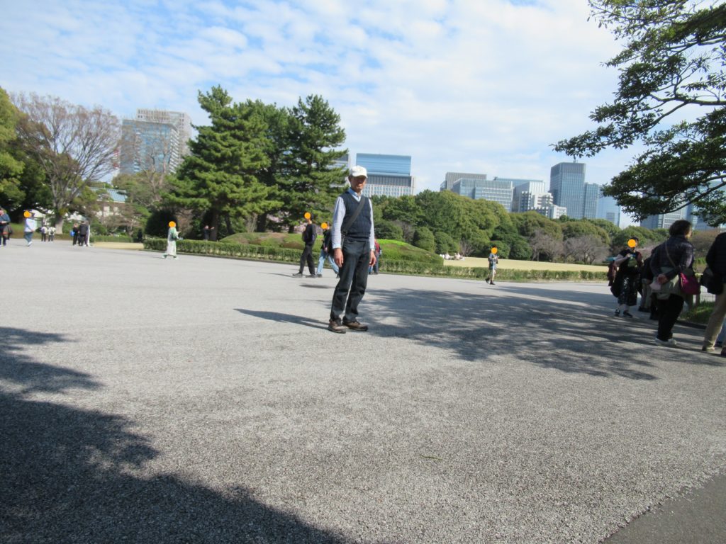 東京駅までの帰りは、また別の入口から皇居に入って近道を通りました。この日は午前中雨模様でしたが、午後は日差しもあり暑くなったので薄手の上着はカバンに入れて、写真の恰好で皇居内を歩きました。