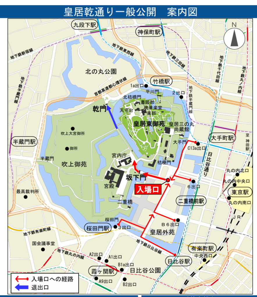 令和8年3月21日(土)から同月29日(日)までの9日間、春季皇居乾通り一般公開を実施します。各日、入場時間は午前9時から午後3時30分までとし、 皇居坂下門から参入、皇居乾門から退出となります。 (出典:宮内庁広報)