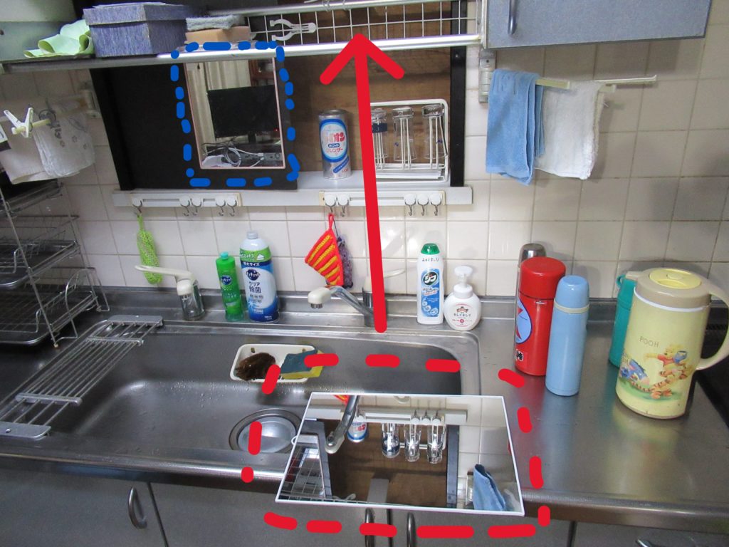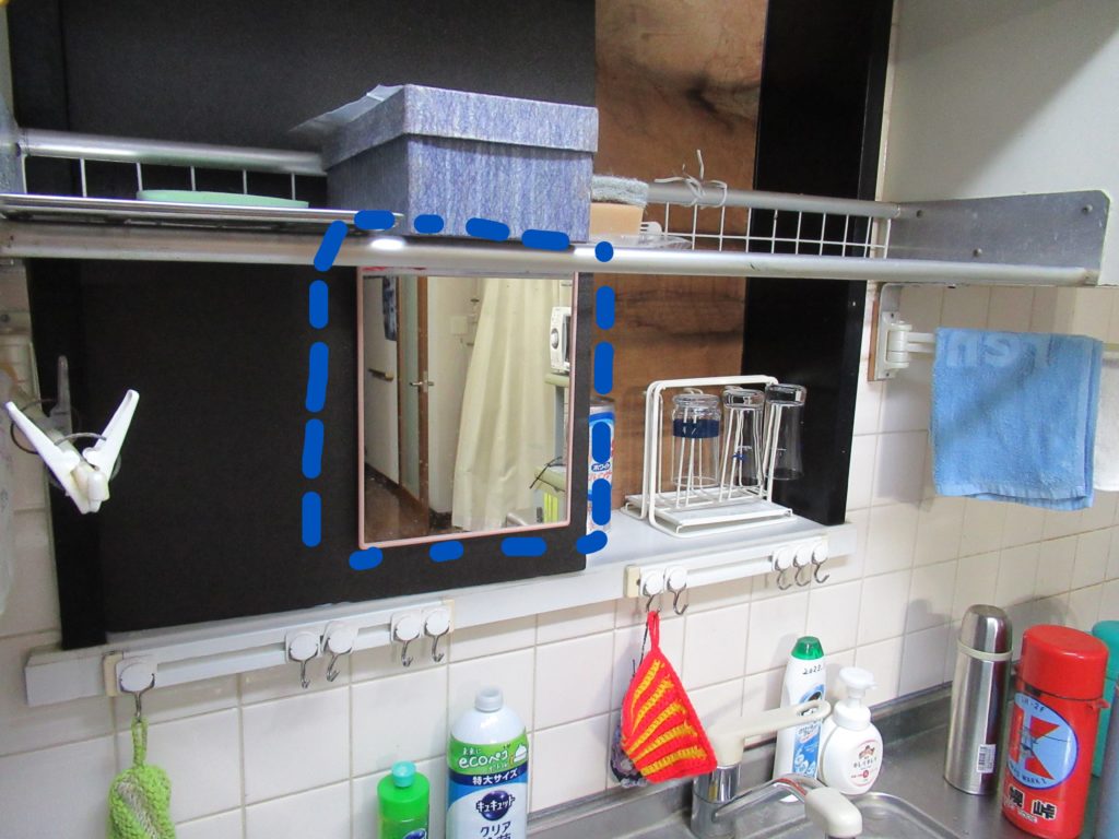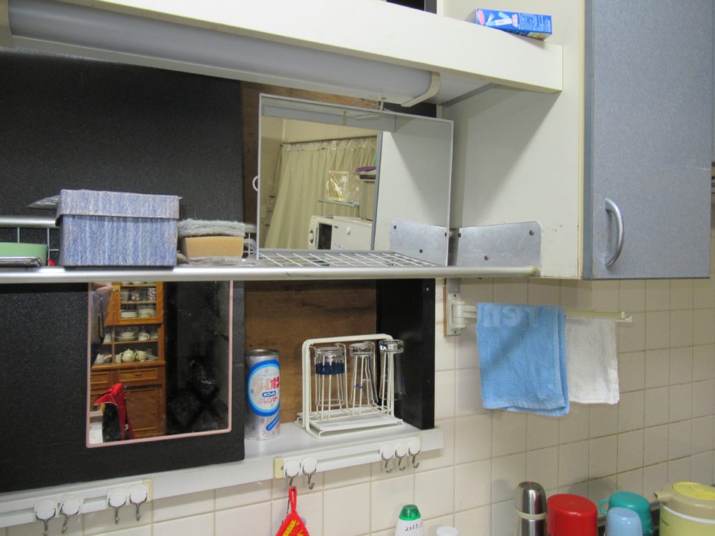 鏡の取り付けが終わりました。私には棚下の鏡より、ずっと見やすいです。妻は私より背が低いから、低い位置の鏡を使うことがあるかもしれません。残しておくことにしました。ではまた