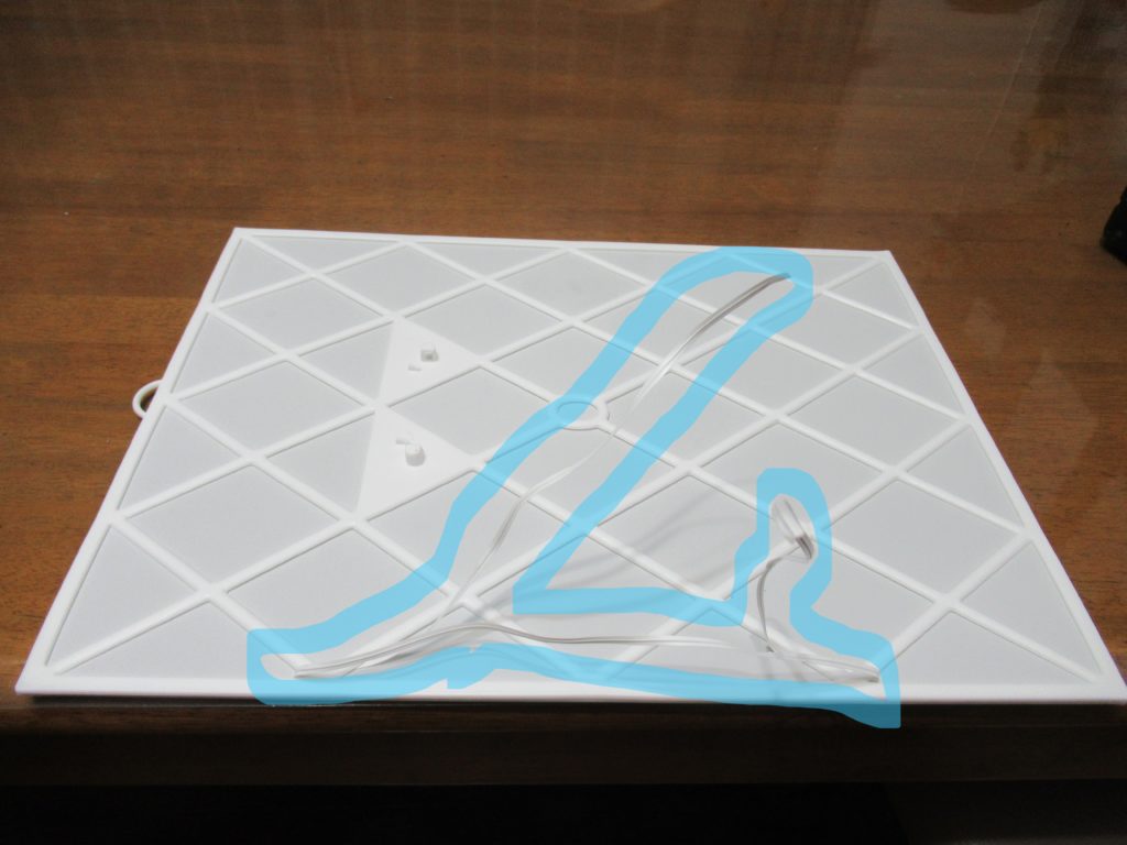 鏡のビニールワイヤーをフックに引っかけました。少し前に倒れるように角度を付けました。