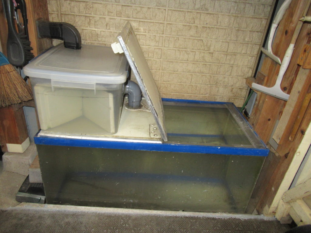 最近、雨天の日があり、貯水槽は雨水で満タンになりました。
